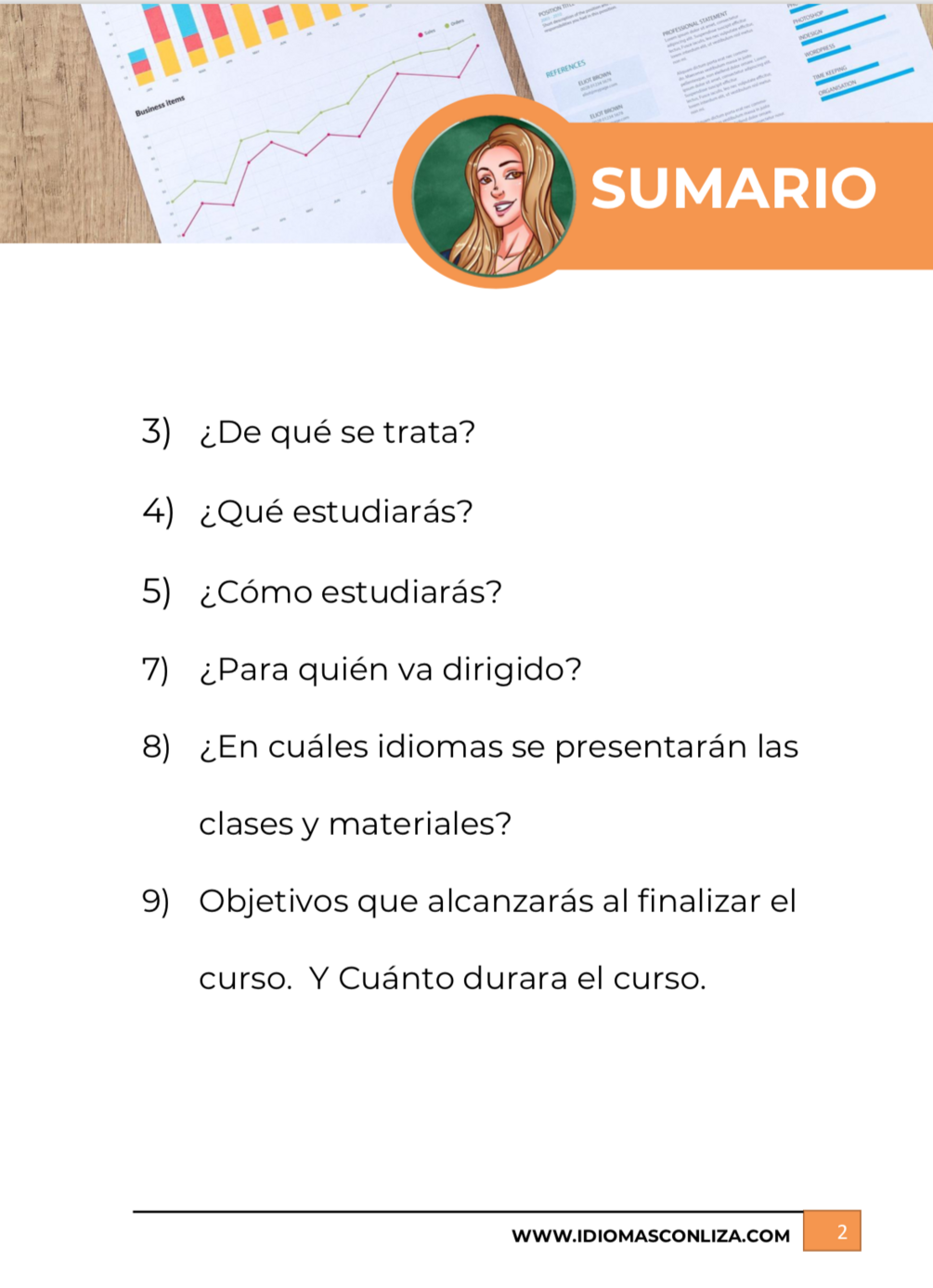 8 videos ; 8 tareas ; 4 audios con repaso de los tiempos semanales a través de textos prácticos.